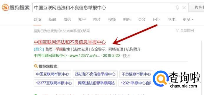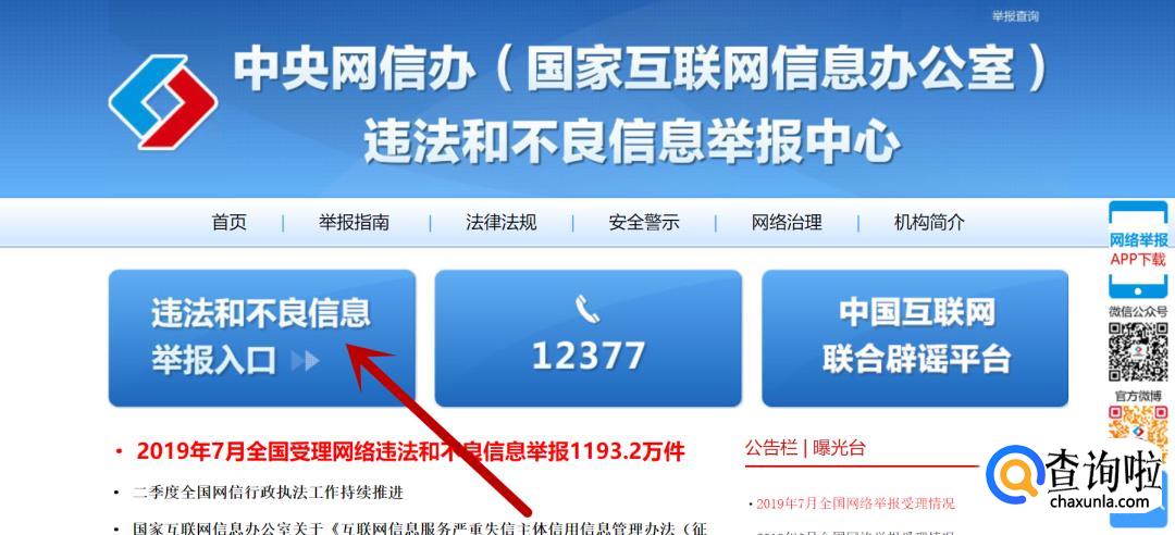 首先,打开“搜索引擎”,在对话栏中输入“中国互联网违法和不良信息举报中心”,进入界面。进入界面后,点击图中箭头所指的地方,进入官网界面。