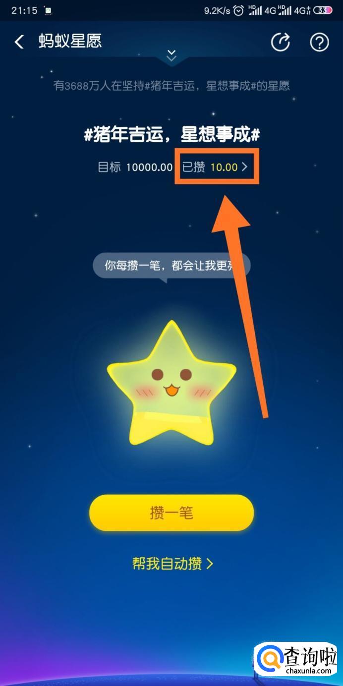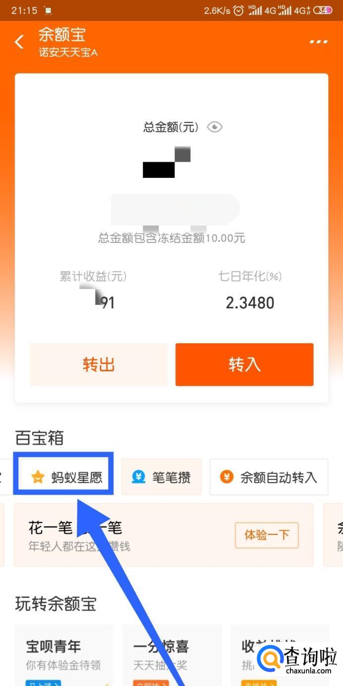 进入余额宝之后我们找到并点击【蚂蚁星愿】。