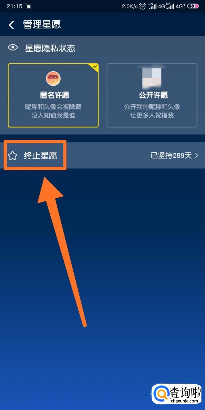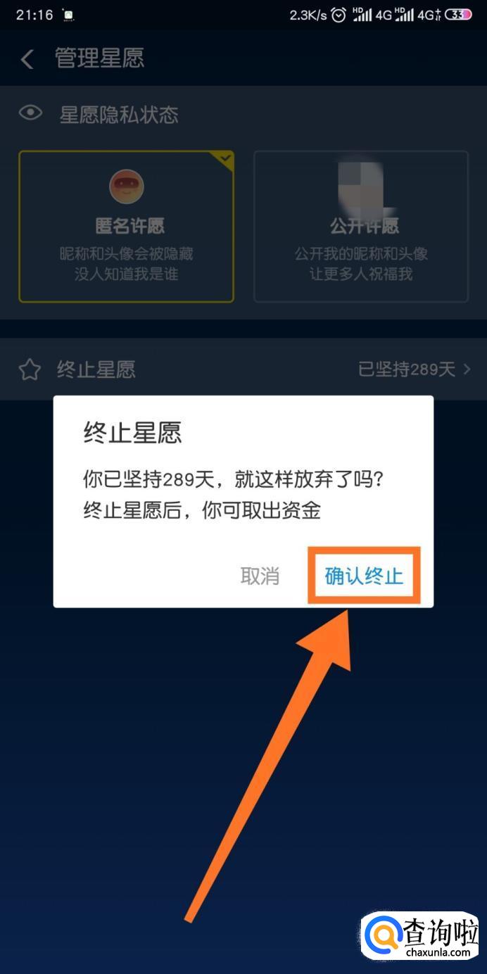 然后点击【终止星愿】。