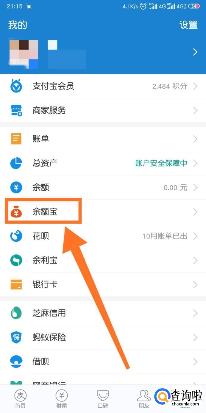 接下来我们点击【余额宝】。