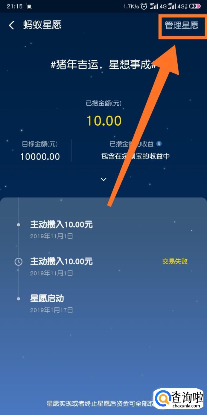 然后我们点击右上方的【管理星愿】。