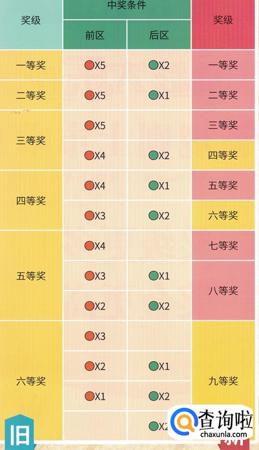 六等奖:投注号码与当期开奖号码中的任意4个前区号码相同,或者任意3个前区号码及2个后区号码相同,即中奖;