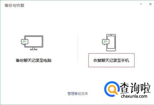 在电脑上点击备份与恢复后,弹出的窗口上选择——恢复聊天记录至手机上。