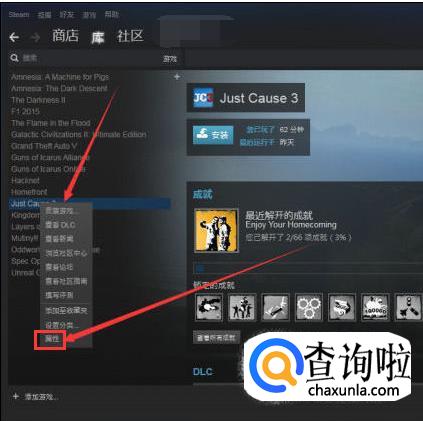 右键该游戏,然后选择属性。