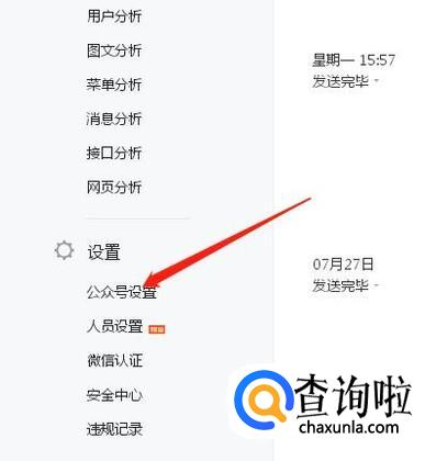 在微信公众号主页面的“设置”一栏中,点击“公众号设置”。
