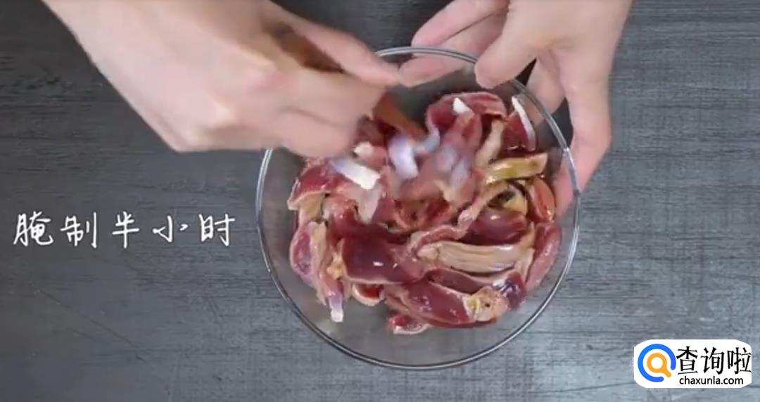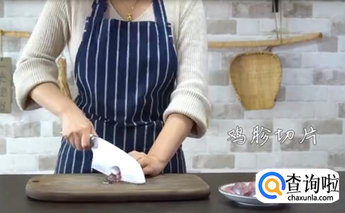 鸡胗洗净切片,鸡胗不要切得太厚,不容易熟。