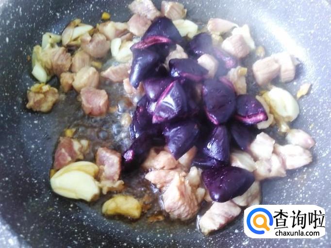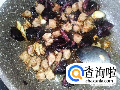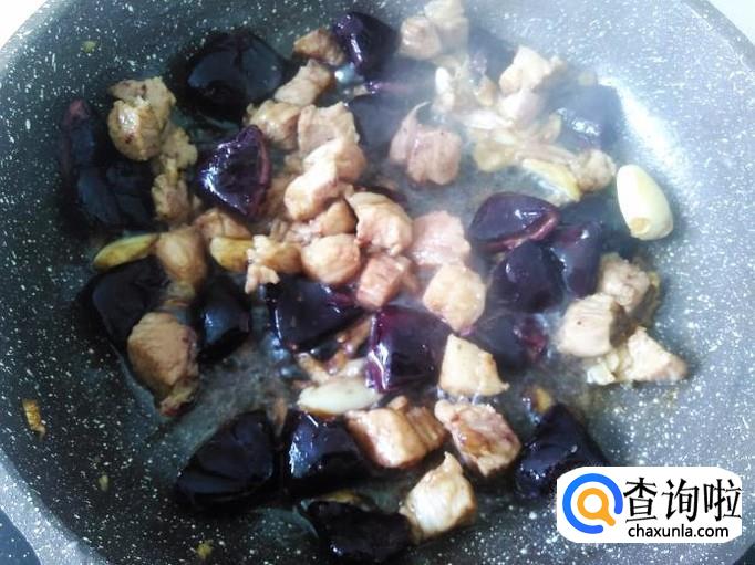 翻炒到肉丁和榄角变焦黄色就可以熄火了。
