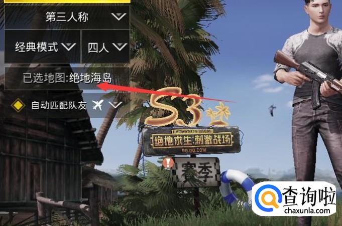 首先大家要选择地图,一定是绝地海岛这个地图,昼夜交替的模式只会出现在这个模式,并且是随机刷的。不是每一句都会有这个模式。