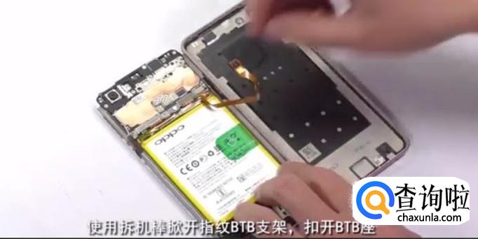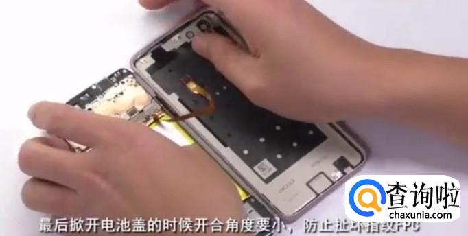 然后用棒子掀开电池盖,注意不要扯坏fpc,如图所示。
