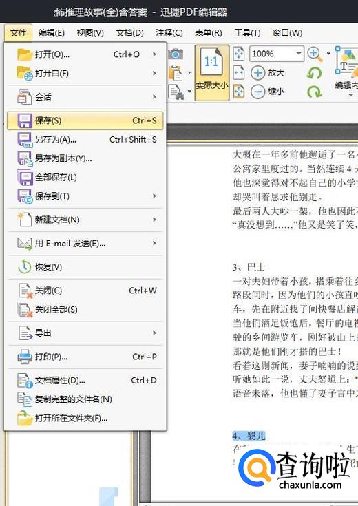 最后我们需要将pdf文件进行保存,点击界面左上角的文件按钮,然后在选项中的保存或另存为中,选一种保存方式对修改后的pdf文件进行保存即可。