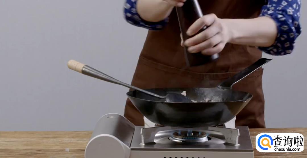 加入肉末煸炒均匀。加入少量盐巴,黑胡椒,翻炒均匀盛盘。