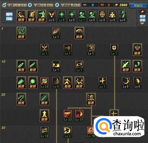 30-40的技能升龙击以及斩龙击是要点满的,前者是霸体技能,后者是吸怪技能,拔刀斩这个AOE虽然伤害高,但是吟唱时间长,容易被打断。
