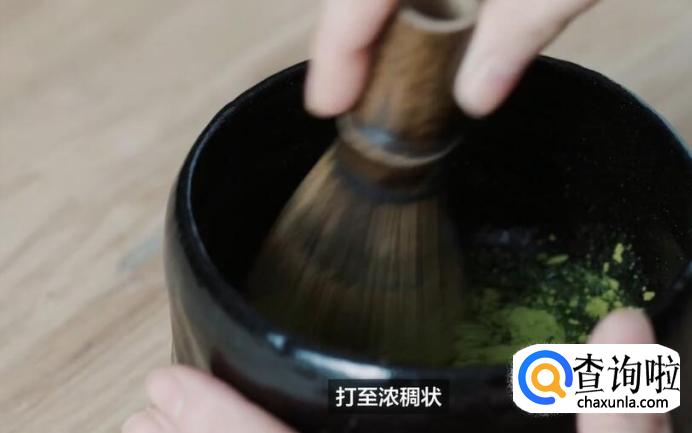 先将过筛的抹茶粉加一点热水,打至浓稠状。