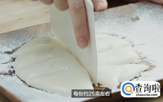 用刮刀快速分割,每份约25g左右。