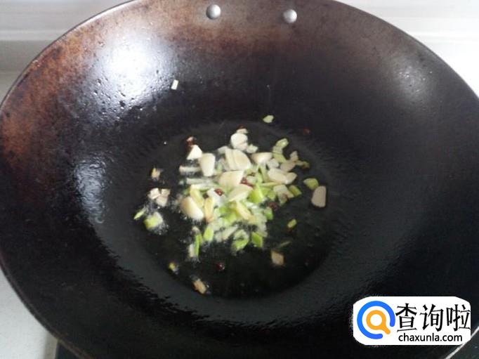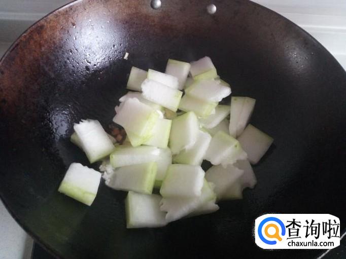 锅内放入油加热,油热后放入花椒,葱,姜,蒜,爆锅。放入冬瓜翻炒。