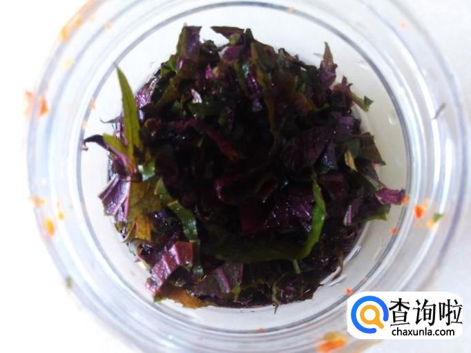紫色用水清洗几遍,然后用手抓干水份,再切成碎末也放到瓶子里。