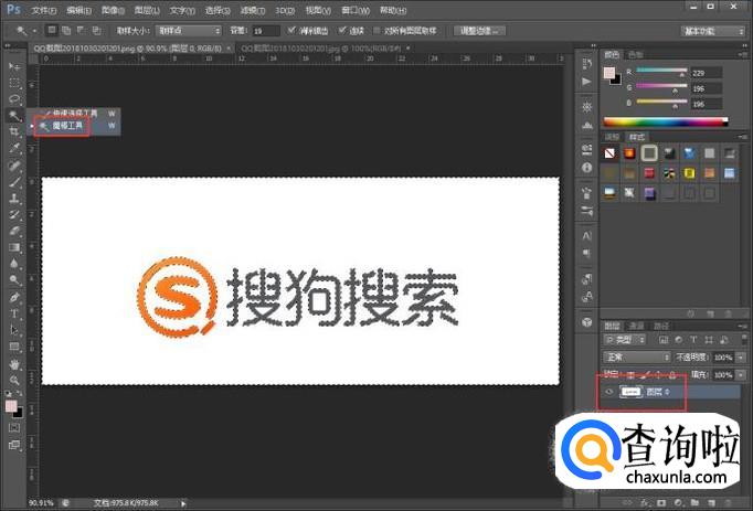 选中该图层,点击左侧工具栏中的“魔棒工具”,点击图片中的白色背景,白色背景就会被选中。注:ps打开的图片图层旁边如有小锁,需要对图层先进行解锁。