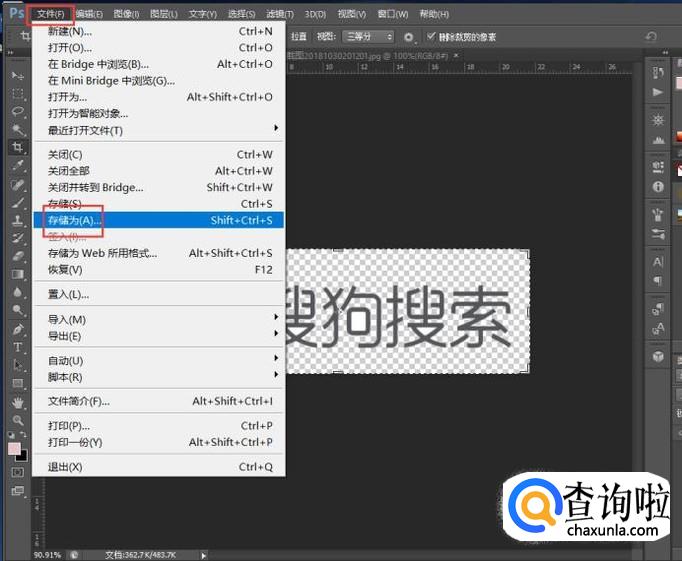 适当调整图片大小后,点击菜单栏“文件”下拉菜单中的“存储为”。