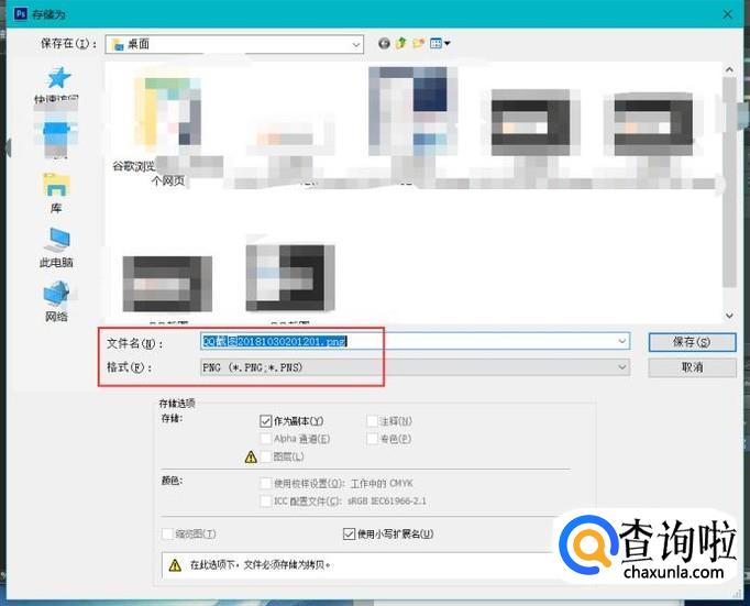在“存储为”对话框中,设置好保存的文件名称,格式设置为“png”,点击“保存”按钮。