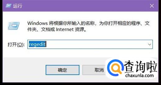 在弹出对话框中输入“regedit”,点击确定。