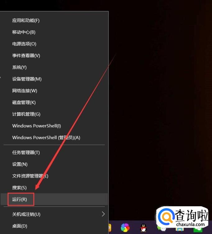 右键单击屏幕左下角的“Win键”,在下拉菜单中选中“运行”。