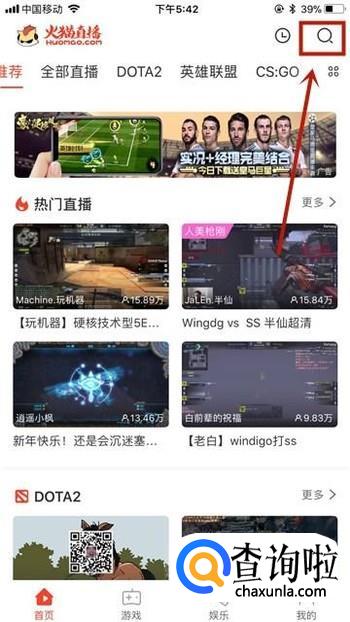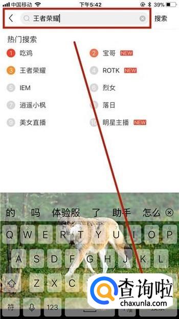 接着键入你要看的直播名称并点击搜索,如下图所示。