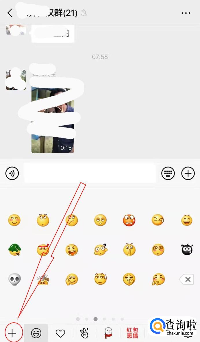 点击右下方的表情按钮。