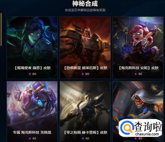 就目前来说,可以兑换的皮肤有,摄魂猎手薇恩(80宝石),恐惧新星德莱厄斯(80宝石),海克斯科技安妮(40宝石),专属海克斯科技克格莫(40宝石),零之枪齐赫卡里姆(40宝石),新创战纪希维尔(40宝石)。