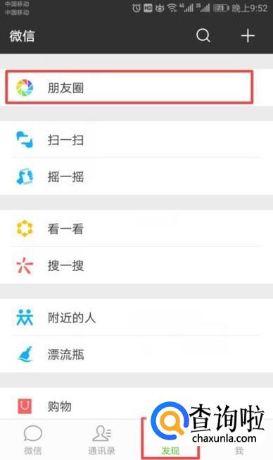 首先,我们打开我们的微信,然后我们点击发现,之后我们点击朋友圈;
