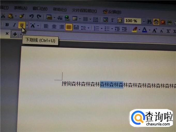 然后点击菜单栏中的下划线快捷图标,这时,只有这几个字的下边有了下划线。