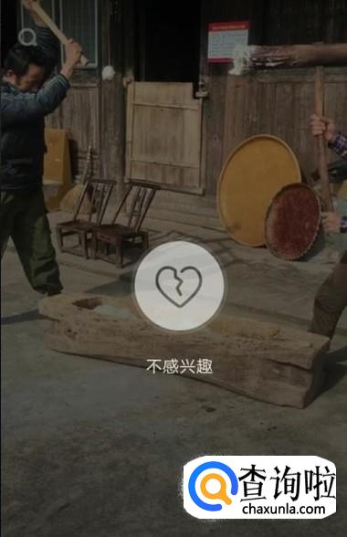 对于不感兴趣的作品,在屏幕中间长按几秒中,就会出现“不感兴趣”的按键,点击一下即可将其加入到不感兴趣的队列中,如图所示。