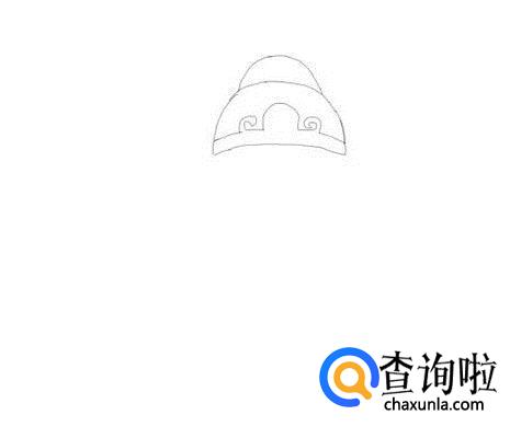 先画出关羽头部上戴的帽子,然后在帽子上面画出帽子上面的结构线,如图所示:
