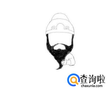 再在帽子的基础上再画出关羽的大胡子,然后在右侧再画出关羽的胳膊及手部,如图所示: