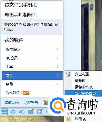 首先先打开QQ界面中主菜单的安全里面有个“安全中心首页”。