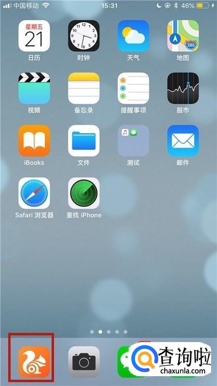 首先在我们的手机桌面上找到uc浏览器并点击它,如下图所示。