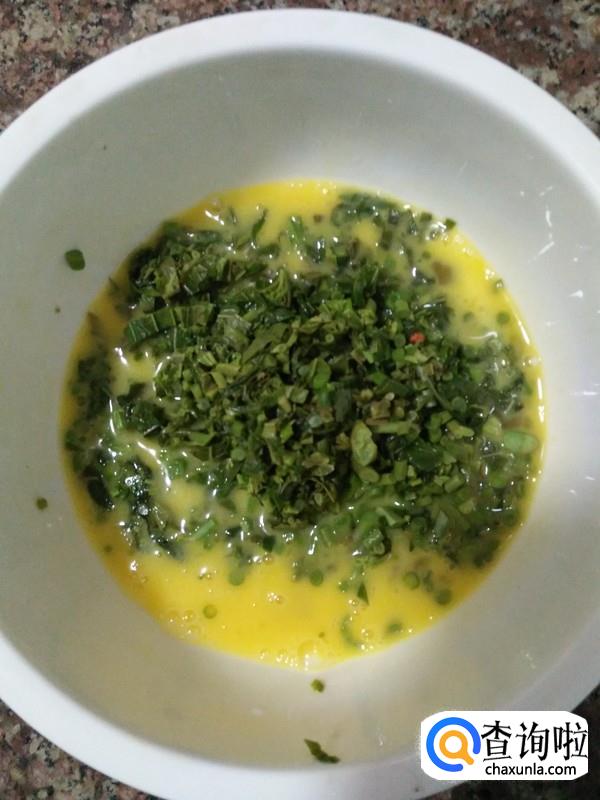 鸡蛋打散,加入香椿末打搅均匀。