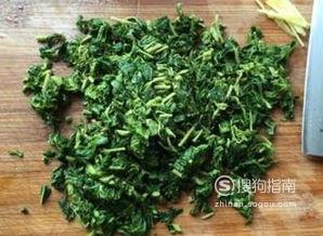 香椿用开水焯烫几分钟后捞起,切成细末。