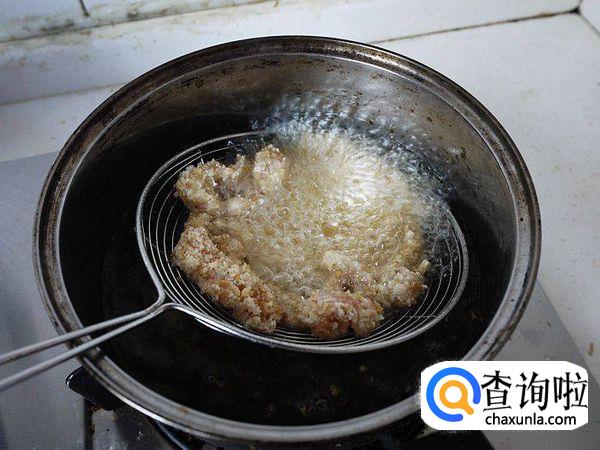 下6成热油锅慢炸,全部炸好后再复炸一遍成金黄色。