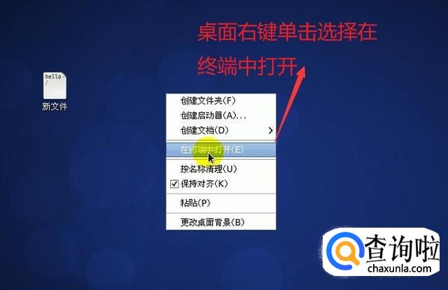 接下来回到桌面中,右键单击选择在终端中打开选项,如下图所示