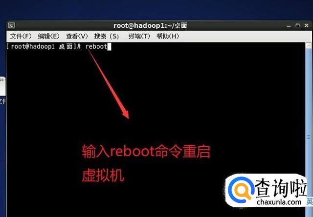 然后在弹出的终端命令界面中我们输入reboot命令对虚拟机进行重启,如下图所示