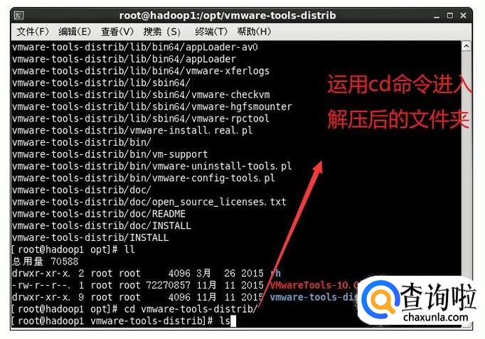 解压以后我们就可以通过cd命令进入到安装文件夹了,如下图所示