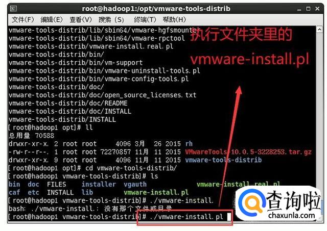 接下来在安装文件夹中有一个vmware-install.pl文件,它就是安装的入口文件,我们执行它进行安装,如下图所示