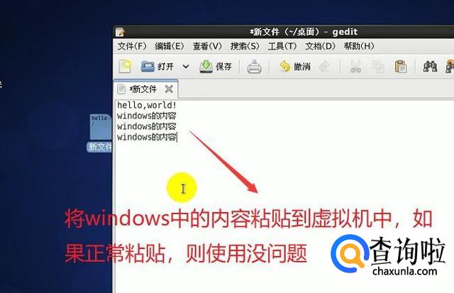 最后重启完毕我们就可以试一下将本机计算机中的内容粘贴到虚拟机中看是否起作用,如果可以粘贴则代表安装正常,如下图所示