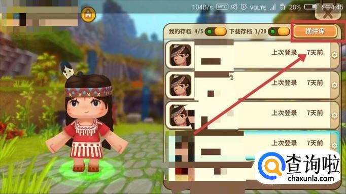 打开游戏,在界面的右上角找到“插件库”,点击进入。