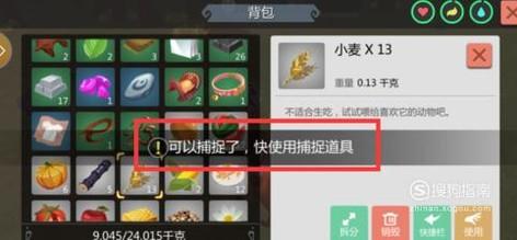 将牛打晕后,点击包裹,点击包裹里的小麦,在弹出的框中点击“使用”。当喂食一定量的小麦后,系统会提示“可以捕捉了,快使用捕捉道具”。