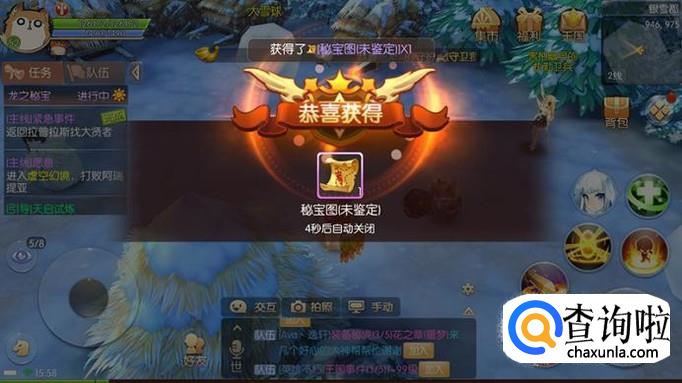 挖掘成功之后即可获得相应的物品,运气好的话就能够获得未鉴定的秘宝图。