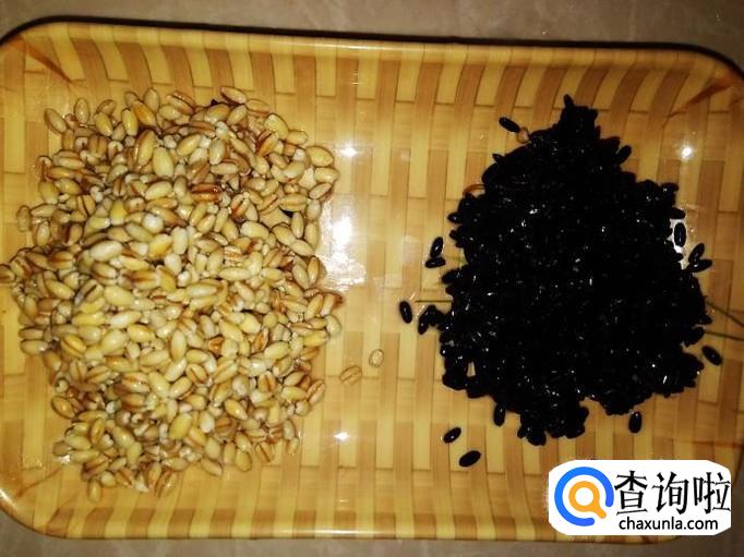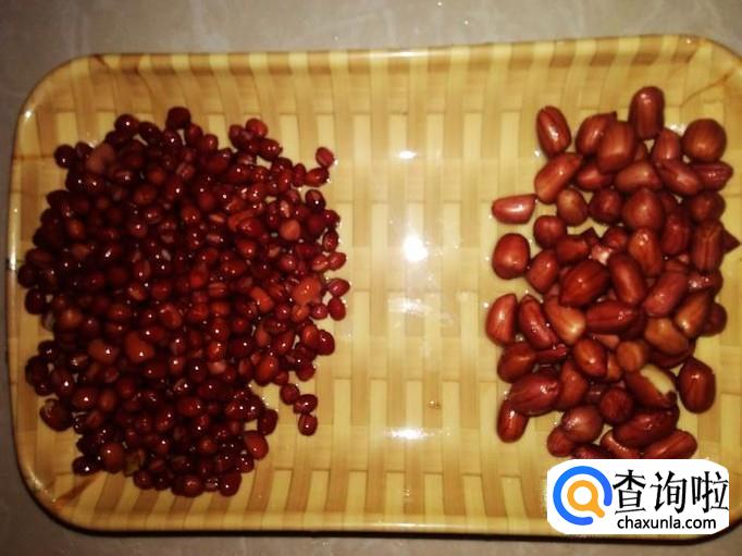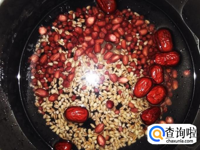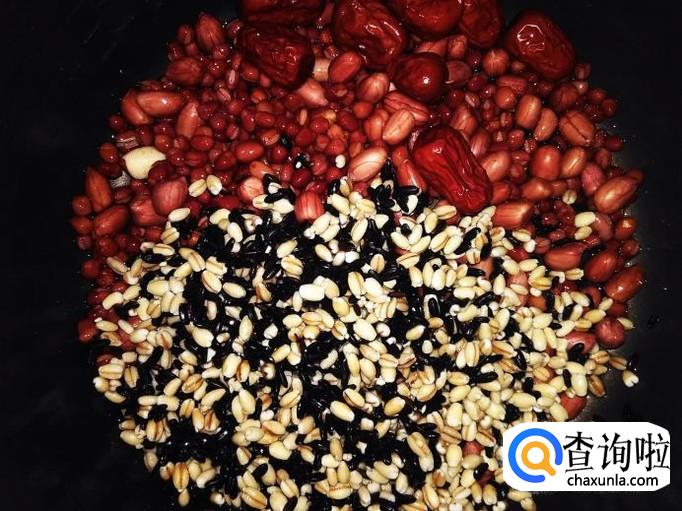 把泡洗过的红豆、花生、糯薏米、黑米、红枣、土红糖准备好。