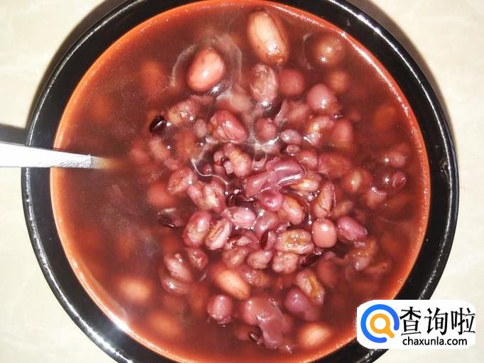 红豆50克,红皮花生40克,黑米40克,糯薏米40克,红枣20克,土红糖适量。