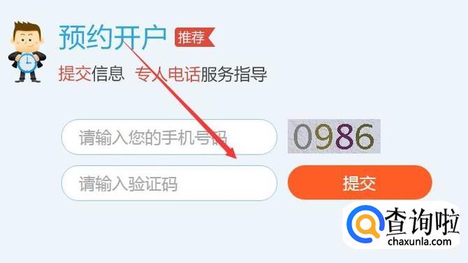 下面有一个预约开户,输入你的电话和验证码