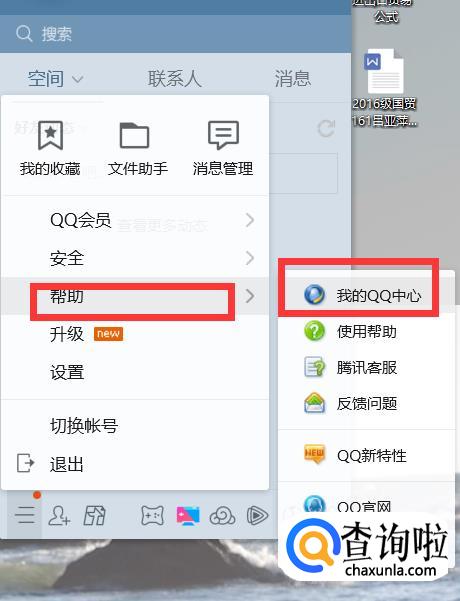 找到<帮助>,然后点击<我的QQ中心>。